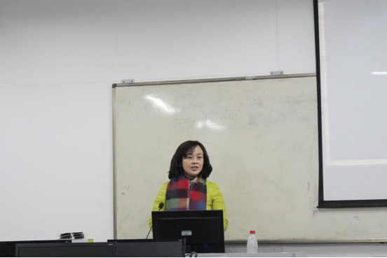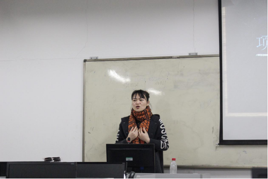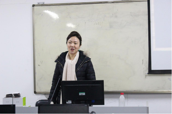随后艾老师上台发言,她表示,大家作为年轻人要多接触这些新潮的东西,并坚持不懈的走下去,只有这样才能领先于他人。艾老师还幽默地说:“希望下一次的学期总结大会上依旧可以看到在座的各位”。