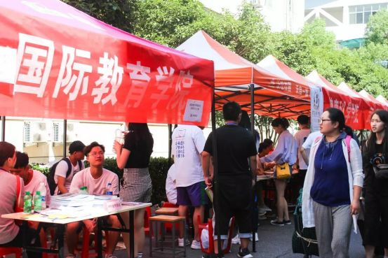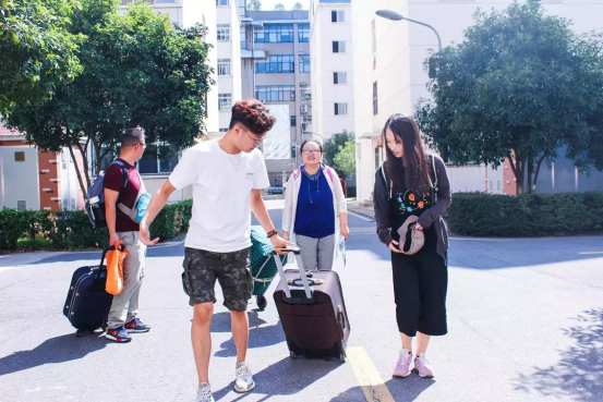 迎新第一天,国际教育学院院长杨梅、国际教育学院副院长刘永东、国际教育学院辅导员马浩哲、国际教育学院辅导员董越来到迎新现场,视察指导并参与着迎新工作。