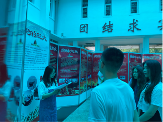 活动过程中,同学们仔细聆听三名学生讲解员的讲解,并针对展板上的内容进行补充,畅所欲言。通过本次活动,使同学们加强了党史学习,提高党性修养,对党的历届全国代表大会召开情况有了更加深入的了解与认识。