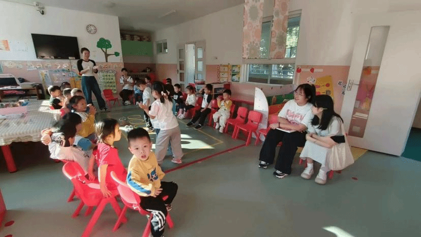 在志愿者们的带领下,奥林幼儿园小朋友们积极踊跃回答问题,课堂上充满了欢声笑语。在轻松愉快的氛围下,孩子们慢慢地对英语有所了解,渐渐地爱上了英语这种语言。
