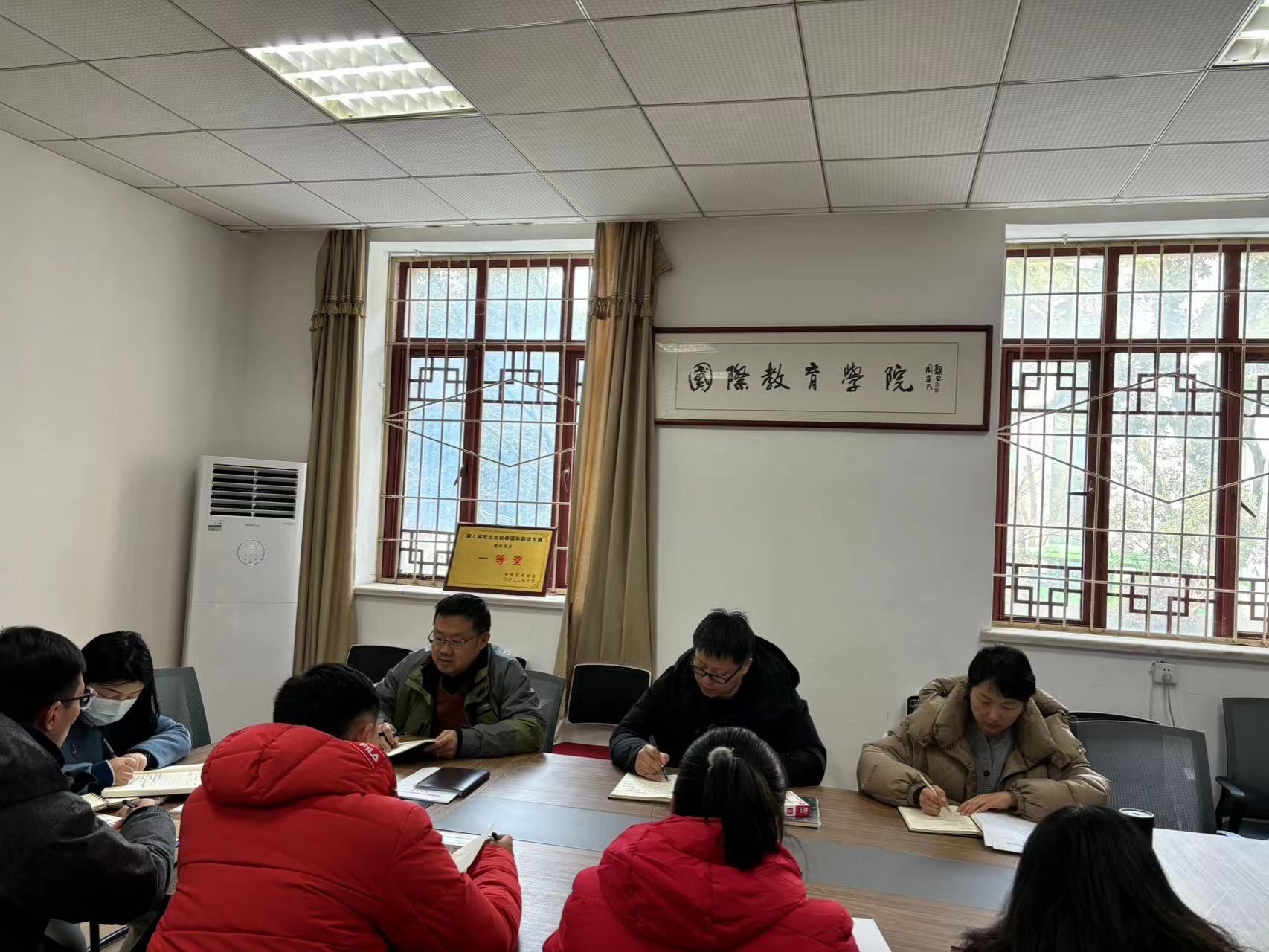 2024年2月27日下午 ,国际教育学院开展党委理论学习中心组学习扩大活动,学院党委委员、教研室主任、各支部书记、辅导员及所有行政人员参加,党委书记田兆峰主持。
