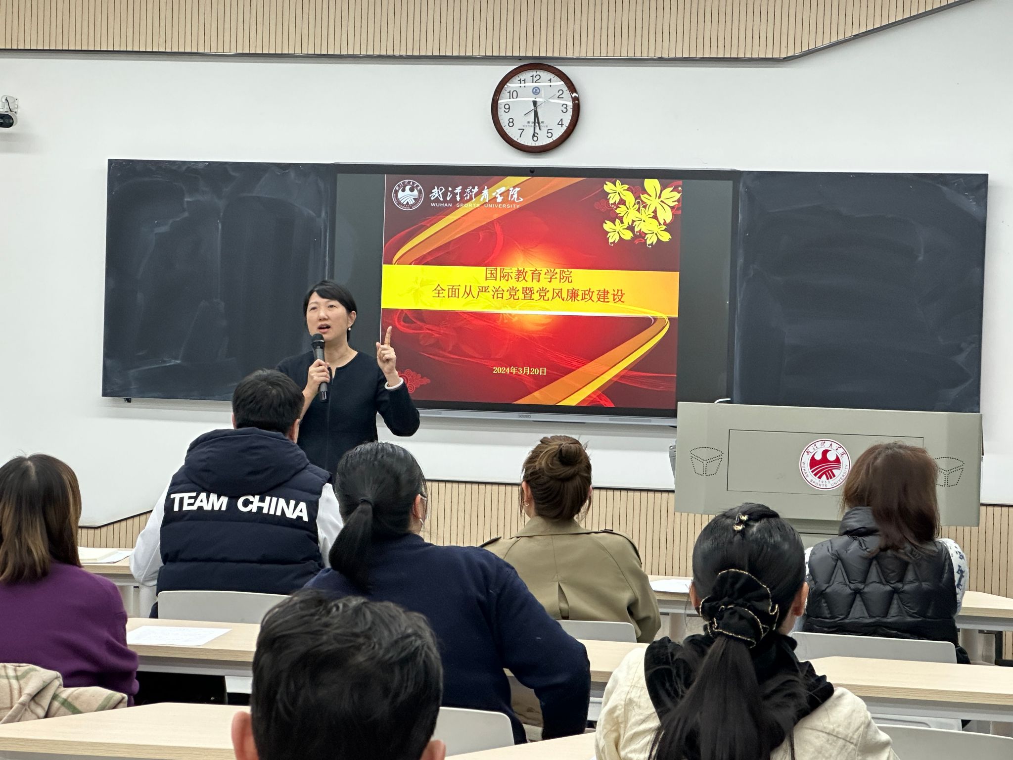 3月20日下午,国际教育学院召开2024年全面从严治党暨党风廉政建设工作会议。学院党委书记田兆峰出席会议并讲话,学院党委副书记张欣主持会议,院长龙斌及学院全体教职工参加会议。