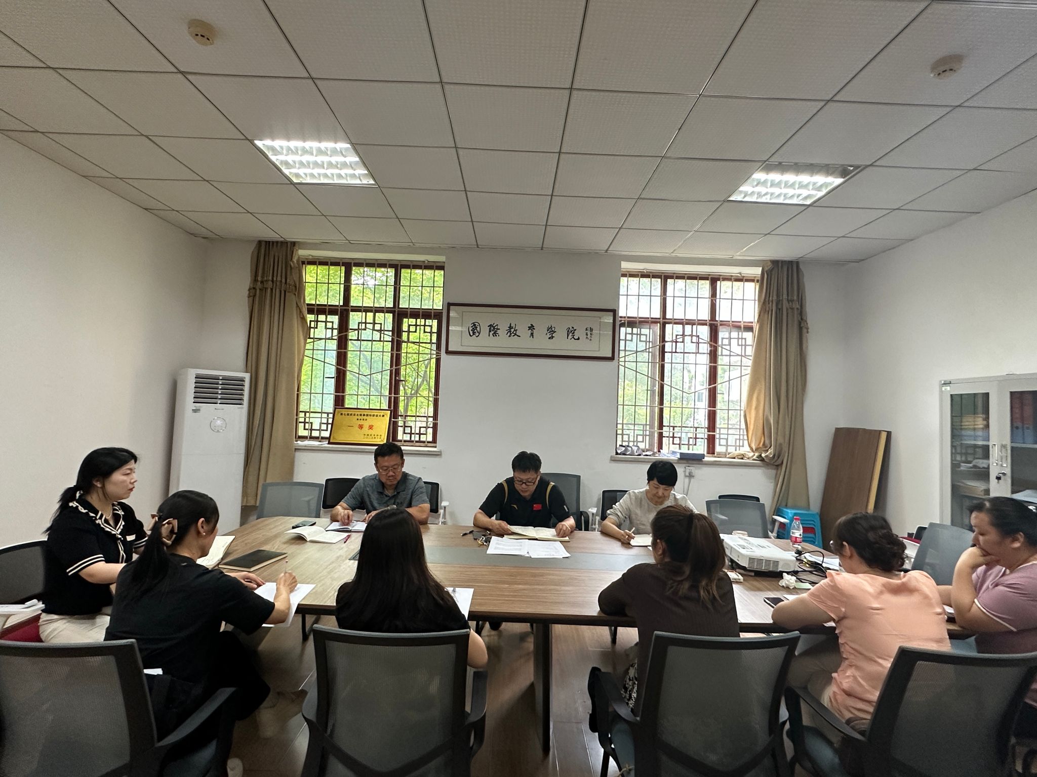 2024年5月29日下午 ,国际教育学院开展党委理论学习中心组(扩大)学习,学院党委委员参加,教研室主任书记、辅导员和行政干部列席,党委书记田兆峰主持。