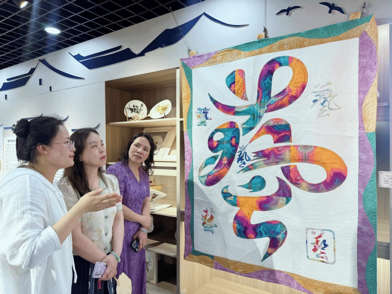 武汉体育学院国际教育学院此次提交的剪纸、中国结、拼布和植物染色四大类文创作品,分别在洪山区文化大厦非遗展厅以及非遗市集中进行了展示,作品不仅体现了传统技艺的精髓,更融入了国际化的设计理念。由武汉体育学院艺术学院院长李芳教授和服装表演专业张晶晶老师指导的以冬奥会为灵感的拼布壁饰《冬奥之梦》,通过拼布艺术再现了运动精神与中国文化的交融;由非遗中国结技艺设计的体育手绳钥匙扣则以其简约时尚的设计,成为年轻观众的热门选择。剪纸文创《十二生肖》《吉狮到》,中国结文创《国色天香》等吸引了众多观众驻足欣赏。留学生们在活动中不仅学习了中国非遗文化,还通过亲手制作非遗作品,深刻感受中华传统文化的魅力。